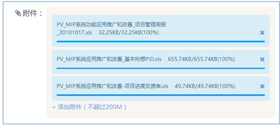 上傳完成后系統(tǒng)會在“創(chuàng)建任務(wù)”彈框上列表顯示已經(jīng)上傳的附件,如下圖所示: