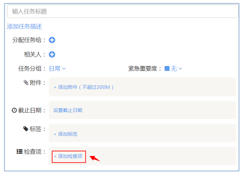任務(wù)檢查項是一種任務(wù)進度標(biāo)記方法,特別是對一些需要較長時間完成的任務(wù)需要設(shè)置一些檢查項,目的是為了方便任務(wù)執(zhí)行者回報任務(wù)的進展。比如有一個任務(wù)“X”,這個 X任務(wù)完成需要通過3個步驟,那么我們可以給這個X任務(wù)設(shè)置3個檢查項:步驟1,步驟2, 步驟3, 執(zhí)行人根據(jù)任務(wù)的進度在相應(yīng)的檢查項上打勾,從而使任務(wù)的創(chuàng)建者能掌握任務(wù)的進度。