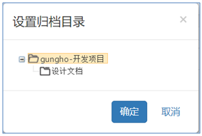 - 點擊上圖紅色框線區域的的“設置歸檔目錄”,系統彈出一個如下圖所示的項目文檔柜目錄選擇彈框。