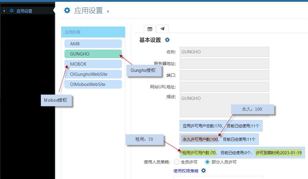 Gungho及Mobox授權(quán) :永久許可+租用許可組成