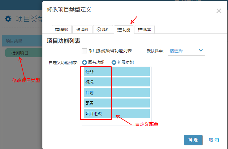 通過項目分類定義 (8012功能點),修改某類項目的菜單
